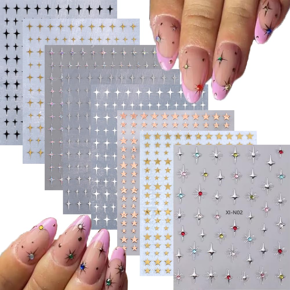 12 Sheets Star Nail Stickers Shiny Gold Silver White Black Stars Nail Art Design Decals 3D Self-Adhesive Star Stickers DIY Nails Decals Nail Tips for Manicure Decoration