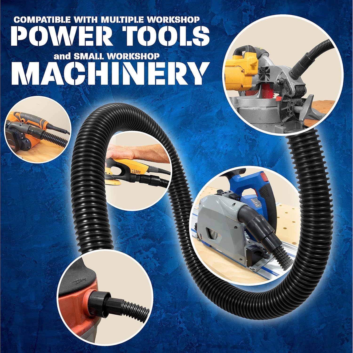 10 Foot Long Dust Collection Power Tool Hose Kit with 5 Fittings/Attachments for Multiple Types/Brands of Power Tools and Work Shop Vacuums