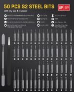 What’s in the Box: 1 Precision Electric Screwdriver, 1 Storage Case, 50 Precision Bits (see the picture for all bits), 1 Tweezer, 1 Pry Bar, USB -Type-C Charging Cable, 1 User Manual