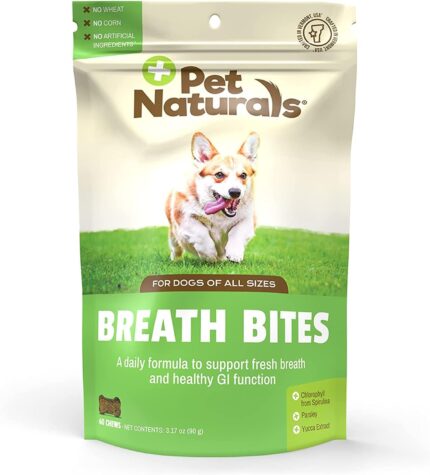 Pet Naturals Breath Bites Breath Freshener for Dogs, 60 Chews – Fresh Breath, Healthy GI Support and Dental Health