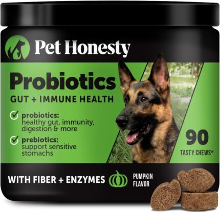 Pet Honesty Probiotics for Dogs for Occasional Diarrhea & Bowel Support, Digestive Enzymes with Prebiotics for Gut Health for Dogs, Immunity Health & Itch Relief (Pumpkin 90 ct)