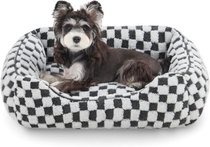 JOEJOY Dog Beds for Small Dogs -Cute Cat Beds for Indoor Cats Calming Pet Beds, Rectangle Orthopedic Cuddle Puppy Bed with Jacquard Shaggy Plush & Anti Slip Bottom, 20x19x6inches, Grey