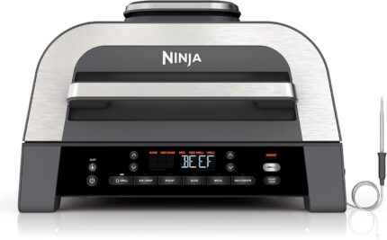 Ninja DG551 Foodi Smart XL 6-in-1 Indoor Grill with Air Fry, Roast, Bake, Broil, & Dehydrate, Foodi Smart Thermometer, 2nd Generation, Black/Silver