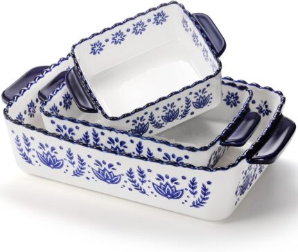 Price: (as of – Details) 3 Size Bakeware Set: Package include 3 size rectangular baking dish set: Large: 12″L x