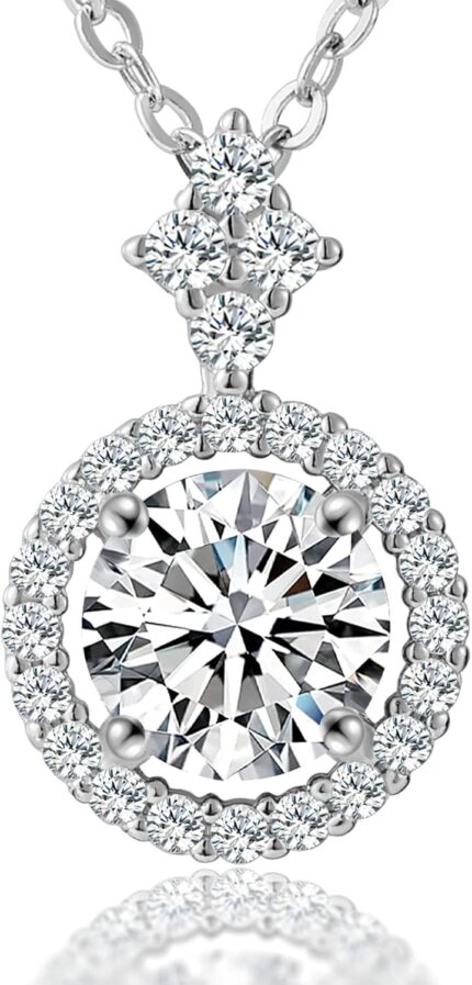 KRKC Moissanite Pendant Necklace for Women, 0.5CT/1CT/2CT/3CT/4CT Lab Created Diamond Solitaire Pendant, VVS1 Clarity D Color, Adjustable 14K White Gold Plated S925 Sterling Silver Chain, Jewelry Gift for Anniversary Valentines Christmas Day