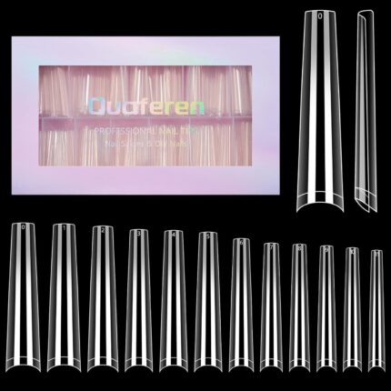 Quaferen 504Pcs Clear Coffin Nail Tips for Acrylic Nails Professional, XXXL Extra Long No C Curve Coffin Straight Acrylic Nail Tips, Half Cover No Crease Nail Extension False Nails for DIY Nail Art