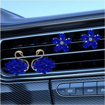 Bling Swan Car Air Vent Clips, 4PCS Crystal Rhinestone Car Diffuser Air Freshener Vent Clips, Cute Auto Air Conditioner Outlet Clips, Car Dashboard Decorations (Blue)