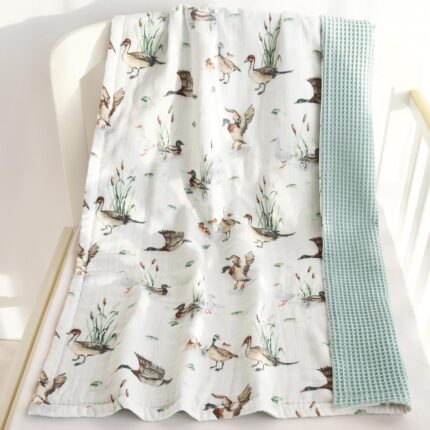 LifeTree Waffle Baby Blankets, Muslin Swaddle Blanket for Boys Girls, 2 Layers Crib Stroller Receiving Blankets with Muslin Front and Waffle Backing Infant Newborn Mallard Duck