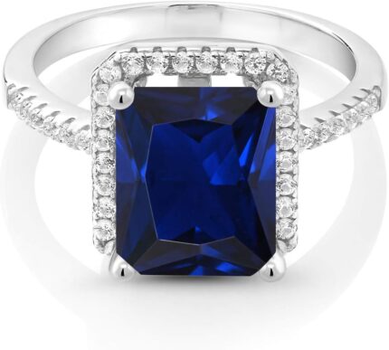 Gem Stone King 925 Sterling Silver Gemstone Birthstone Engagement Ring | Emerald Cut 10X8MM | Wedding Engagement Anniversary Promise Ring For Women | Available In Size 5, 6, 7, 8, 9