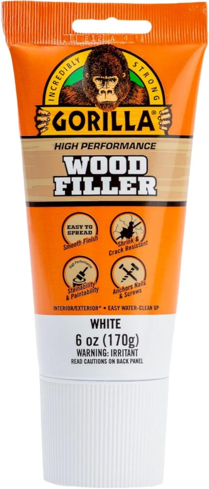 Gorilla All Purpose Wood Filler, White Wood Filler, 6 Ounce Tube (Pack of 1) – Water Resistant for Indoor or Outdoor Projects and Repairs