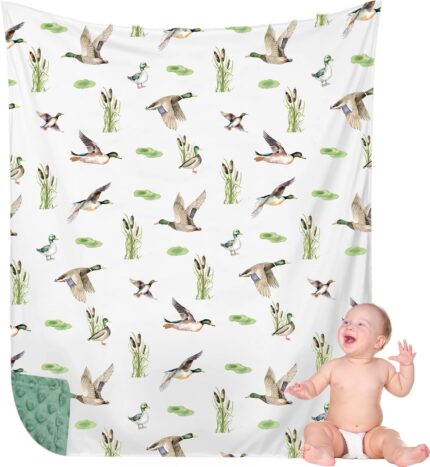 Mallard Duck Baby Blanket for Boys Girls Double Layer Minky with Dotted Backing Soft Mallard Duck Stuff Blanket for Toddler Newborn, 30 x 40 Inch