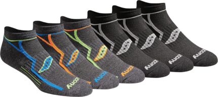 Saucony Men’s RunDry Bolt Performance No-Show Socks, Available in M-XXL (6, 12, 18 Pairs)