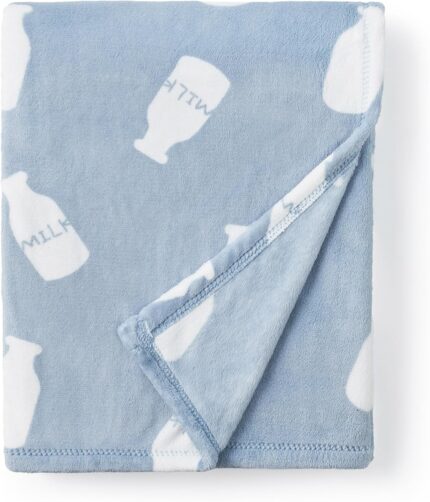 Baby Blankets for Girls and Boys, Soft Milky Plush Fleece Baby Blanket, Receiving Blankets and Swaddle Blankets for Newborns, 30×40 Inch, Blue Milk Bottle