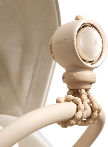 JISULIFE Stroller Fan Baby Large, Safe Bladeless for Crib, Desk, Portable Battery Rechargeable Cooling Fan with Air Turbo Tech, Night Light, Food-Grade Gift for Mom/Dad/Friend – Brown