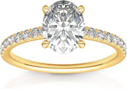 PAVOI 14K Gold Plated Oval Engagement Ring for Women – Hidden Halo 2.5CT Cubic Zirconia Promise Ring – Wedding Band