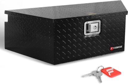 FORWODE 39 Inch Trailer Tongue Box Aluminum Trailer Tool Box for Storage Toolbox, Aluminum Diamond Plate Trailer Tongue Box with Lock – Black