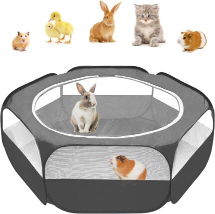 Amakunft Guinea Pig Playpen with Cover, Bunny Playpen with Top, Rabbit Pop Up Playpen with Roof, Small Animal Play Pen Indoor, for Ferret/Chinchilla/Bearded Dragon/Kitten (Black)