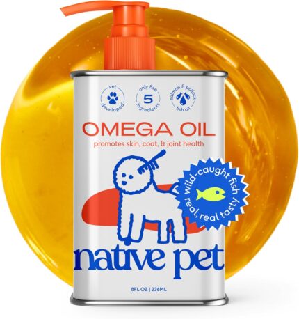 Native Pet Omega 3 Fish Oil for Dogs & Cats – Promotes Healthy Skin, Shiny Coat, & Strong Joints – Made with Wild Alaskan Salmon Oil for Dogs – Tasty, Fast-Absorbing Omega 3 6 9 Liquid Supplement- 8oz