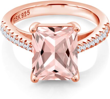 Gem Stone King 18K Rose Gold Plated Silver Peach Simulated Morganite and White Created Sapphire Ring For Women (3.46 Cttw, Available in size 5, 6, 7, 8, 9)