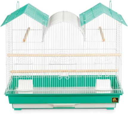 Price: (as of – Details) Prevue Pet Products Triple Roof Bird Cage Teal and White SP1804TR-2 features a unique triple