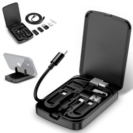Multi-Functional Compact Cable Card with 22″ USB-C Cable & USB-A/Micro-USB/Light/OTG USB Adapter Kit Cable Convertor Storage Box for Traveling Phone Pad Charging PC Computer Data Transfer