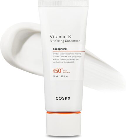 COSRX Vitamin E Vitalizing Face Sunscreen SPF 50, 1.69 fl oz, SPF Moisturizer, Lightweight under Makeup, Travel Essentials, Summer Essentials, Korean Skin Care, Korean Sunscreen for Face