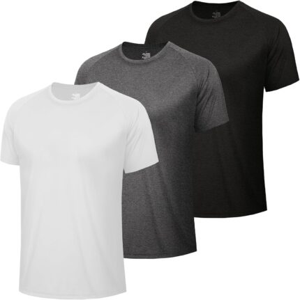 3 Pack Workout Mens Shirts – Quick Dry Causal Moisture Wicking Work Gym Athletic Short Sleeve for Basketball Running