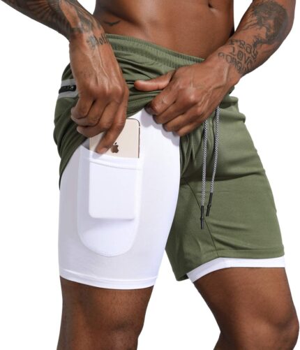 Leidowei Men’s 2 in 1 Workout Running Shorts Lightweight Training Yoga Gym 7″ Short with Zipper Pockets