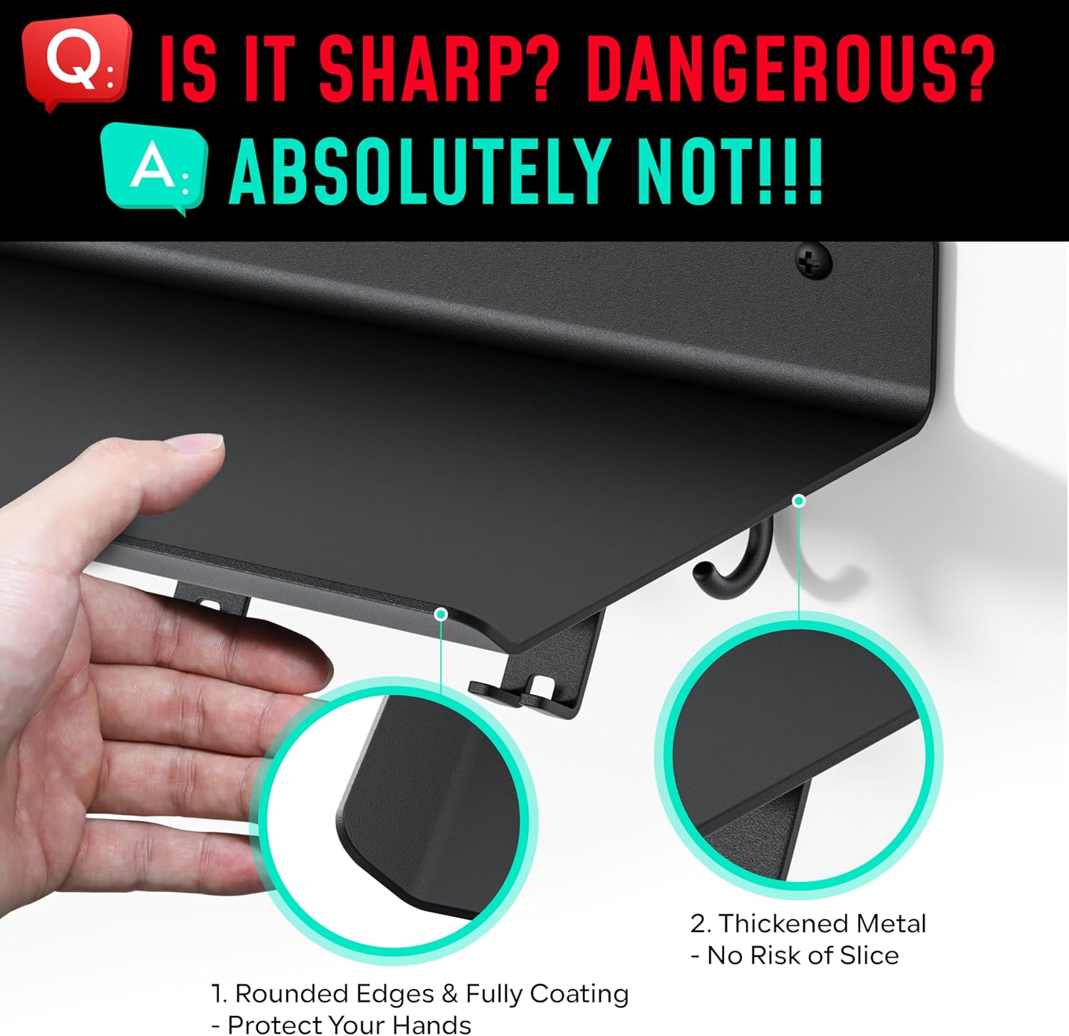 Rounded Edges & Fully Coated: Crostice accessories shelf designed with rounded edges and a fully coated surface for safe usage; ideal for homes with children or pets; thickened metal plate construction enhances longevity; protected by US Design Patent