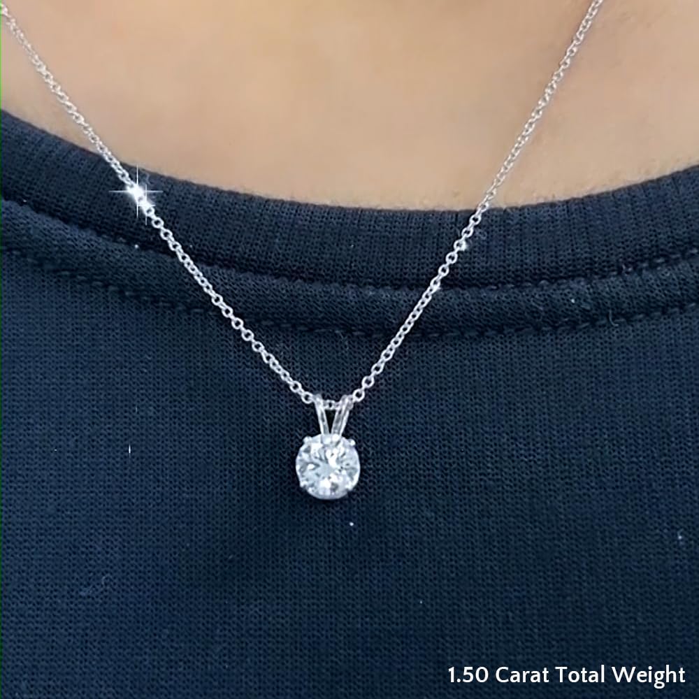 14K Gold 1/2-5 Carat LAB GROWN Diamond Solitaire Pendant IGI Certified 4 Prong Diamond Pendant Necklace For Women (E-F-G, VS1-VS2, 0.50-5 C.t.w)