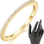 14K Gold Plated- Cubic Zirconia Simulated Diamond Stackable Rings Eternity Bands/Silver Rings, Gold Rings for Women- 1.5mm, 2mm Stacking Rings for Oura Gen 4/Oura Gen 3, Size 4-12