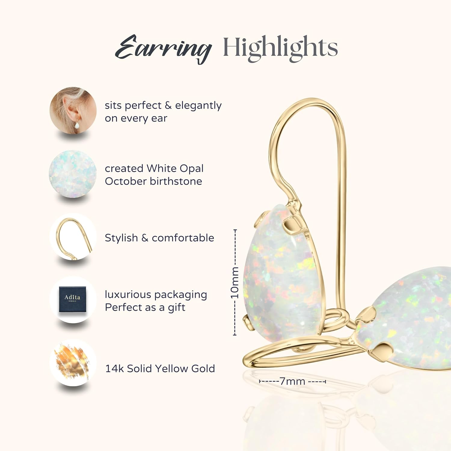 14K Solid Gold Earrings – Opal Earrings for Women – 14K Gold Earrings for Women – October Birthstone Earrings – Teardrop Earrings for Women – Gold Dangle Earrings – Small Dainty Earrings