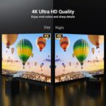 [HIGHER QUALITY IMAGES: 1500 ANSI & 4K Support] This 4K projector offers up to 1500 ANSI lumens brightness and supports 4K video, ensuring bright and clear images whether it’s day or night. Portable projector with a 20000:1 contrast ratio and 95% color gamut present richer light and dark levels and color details, making every frame vivid and lively. Enjoy a cinema-quality experience at home, and it’s also the perfect choice for outdoor movie nights.