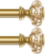 2 Pack Gold Curtain Rods for Windows 28-48 Inch: 1 Inch Adjustable Acrylic Drapery Rod with Translucent Gold Foil Finials- Single Decorative Curtain Rod for Bedroom & Bathroom