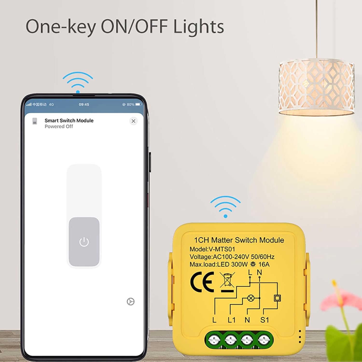 2. App & Voice Control: Control your Matter smart switch module from anywhere, anytime via the App or just give voice commands to Siri, Amazon Alexa, Google Assistant or SmartThings.