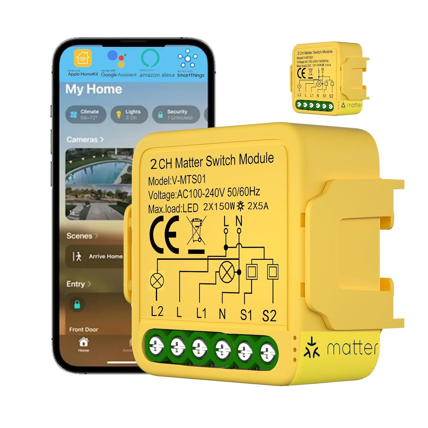 1. Matter Multi-platform Compatibility: Discover the power of Matter! Never limited to any platform anymore. Matter light switch module works seamlessly across all certified smart home platforms such as Apple Home, Alexa, Google Home, and SmartThings, enabling interoperability of all platforms and all Matter smart home devices.