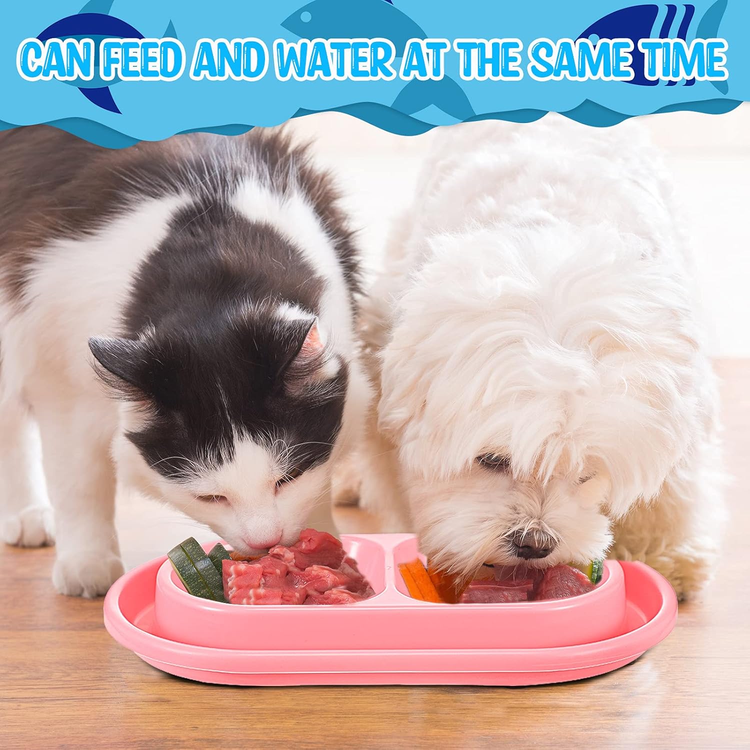 Size detail: the size of the double plastic dog bowls is 27.5 x 15.5 cm/ 10.83 x 6.1 inches; The bowls are divided into 2 parts, so that you can feed and water your pet at the same time