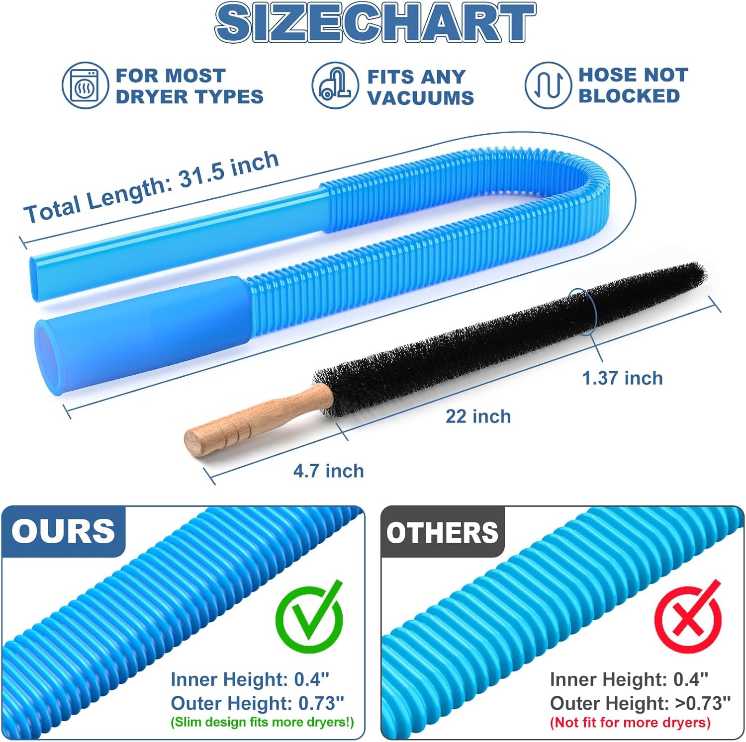 [Suitable for Almost All Dryers] The inner height of our Vacuum Hoses attachment is the same as on the market at 0.4″, while the outer height is 0.73″ which is thinner than the hose opening on the market, so it can enter narrower gaps