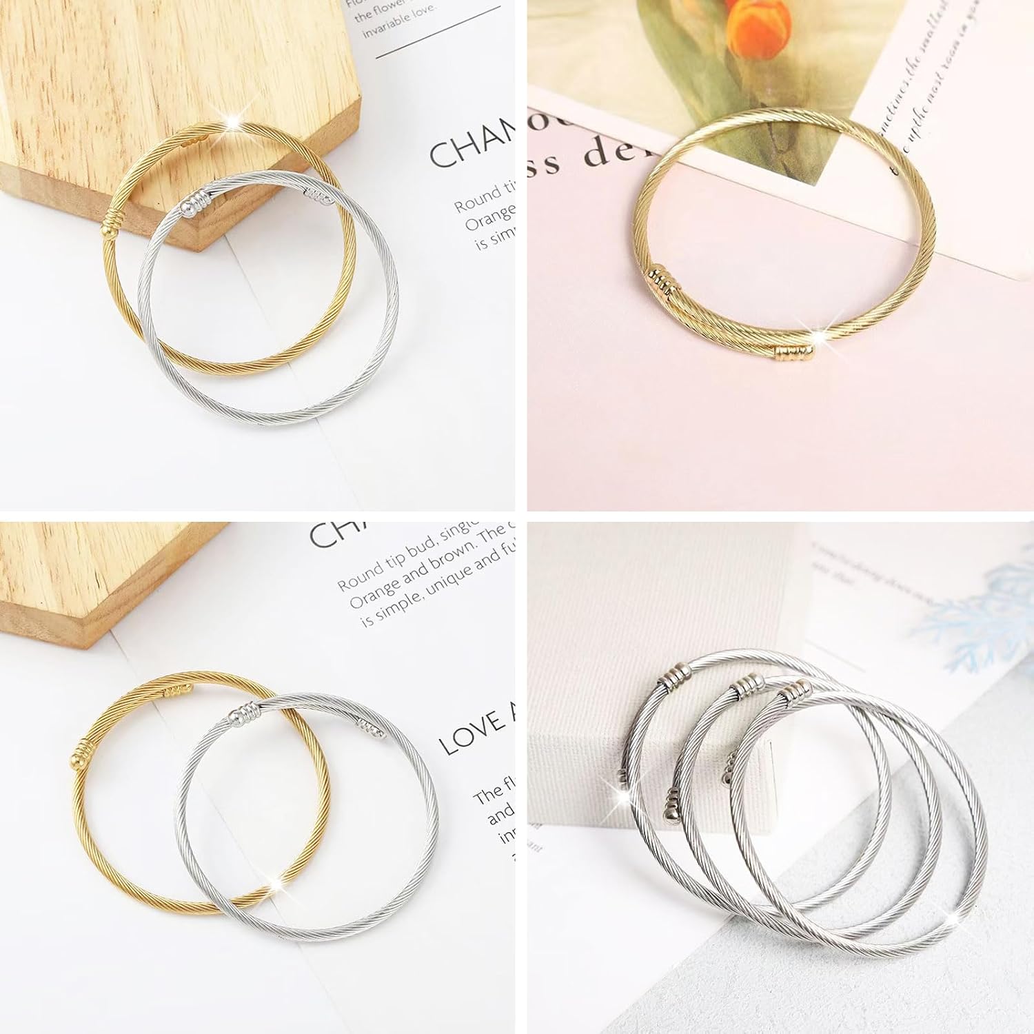 【High Quality Twisted Open Cuff Bracelets】 Our Twisted Wire Bracelets Are Made Of Quality Stainless Steel, Which Is Strong And Durable, no nickel and lead, hypoallergenic,Not Easy To Break, Not Easy To Rust, Not Easy To Fade, And It Is Very Lightweight And Comfortable, The quality is good. Can Be Used For A Long Time. safe for sensitive skin.