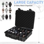 21 Slots Watch Travel Case Organizer Watch Hard Collection Storsge Box with Padlockable Hole Waterproof Watch Box with Foam for Men & Women Watch Carry Case Fits All Watches