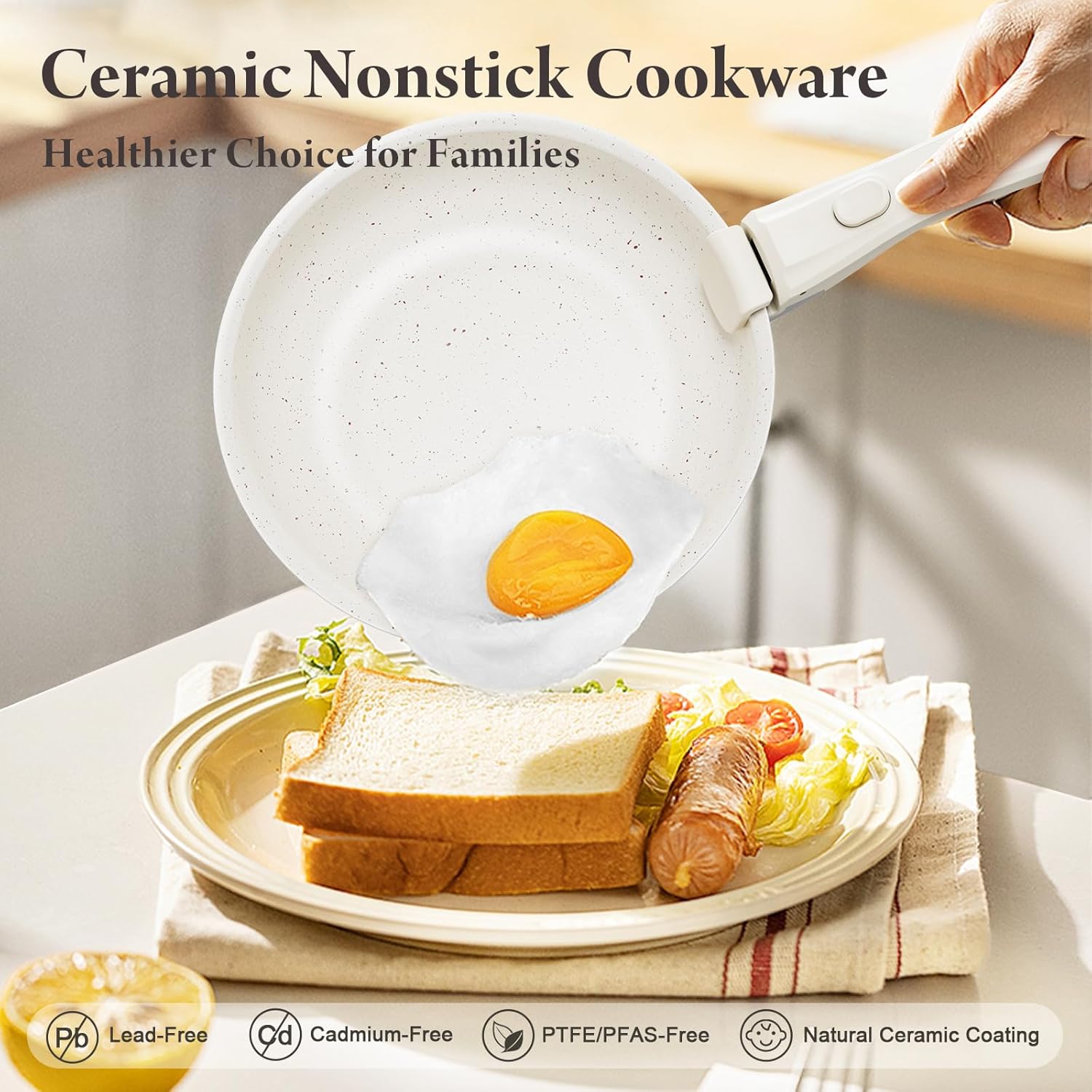 22-Piece Pots and Pans Set Non Stick with Removable Handles, Ceramic Cookware Set, Large-Capacity & Non Toxic, Induction & RV Compatible, Dishwasher Safe, PFAS/PTFE/PFOA Free, White