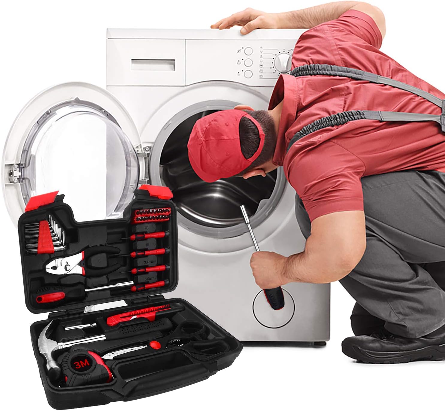 RVOGJP 39-Piece Tool Kit is the perfect choice to accomplish your general purpose projects, repairs, and maintenance at home, garage, office, shop or dormitory, no matter you are a homeowner, a business owner, a college student or a DIYer. It contains all the basic but necessary tools you will need around your home to assemble furniture, install back yard and patio essentials, hang picture frame, fix simple plumbing issues, repair your bicycle, and a lot more. All the tools in this kit are made from high strength materials, precisely manufactured and heat treated.