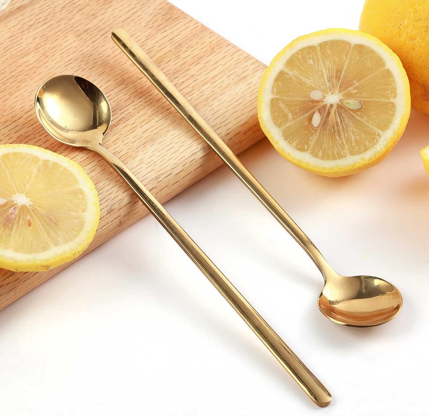 4 PCS 6.7 Inches Coffee/ Tea Spoons Long Handle, Gold, Ice Tea, Espresso Stainless Steel Long Spoons for Stirring