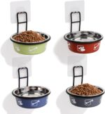 4PCS Multi-Color Raised Cat Bowls, Wall Mounted Cat Food Dish, Elevated Cat Food and Water Bowls, Stainless Steel Hanging Pet Bowls with Stand, Nonslip Pet Feeding Bowls
