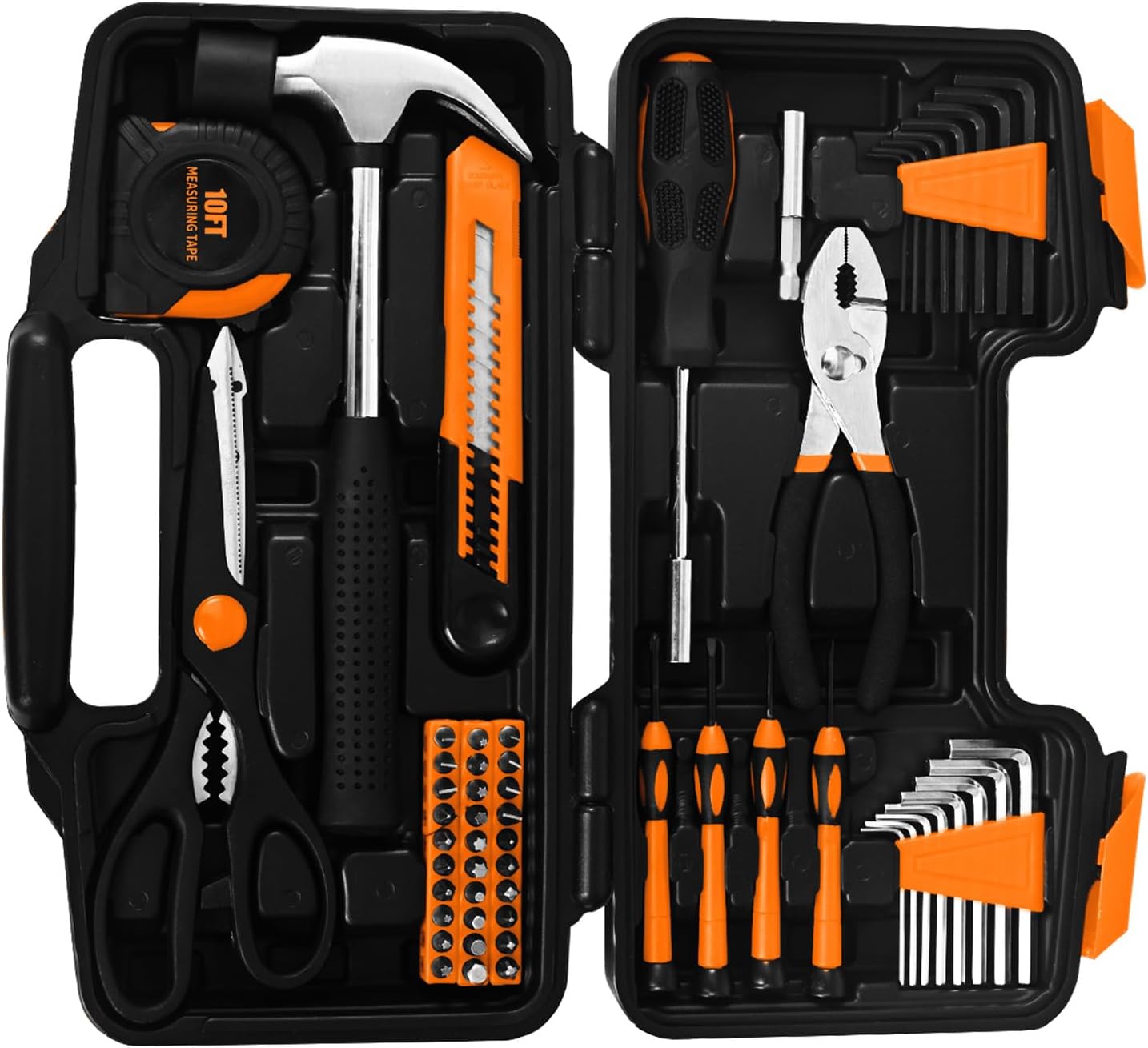 58-Piece Tool Kit Basic Home Repair Tool Set, General Household Hand Tool Kit,Small Tool Kit with Plastic Toolbox Mini Tool kit for Women, Office & College Repairs Orange