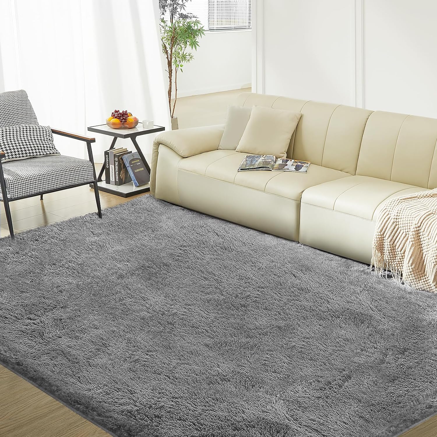 5X8 Ultra Soft Rug for Living Room, Fluffy Shag Area Rug for Bedroom, Modern Shaggy Carpets Fuzzy Rug for Teens Dorm Nursery Home Decor Aesthetic, Upgrade Anti-Skid Durable, Grey