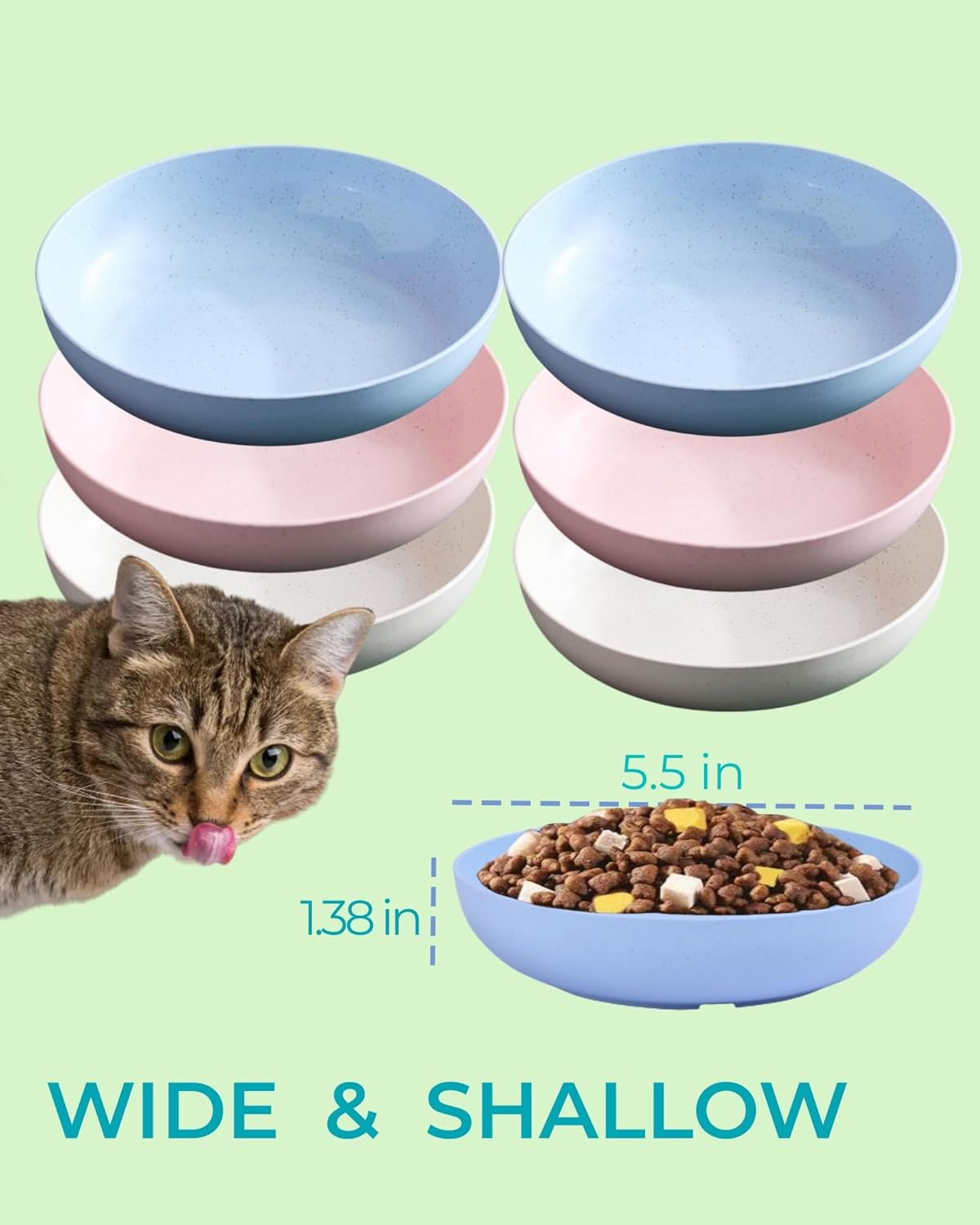 OPTIMAL DESIGN FOR CATS: With a 5.5 inch diameter, our whisker fatigue cat bowls are shallow and wide to prevent whisker contact; This small plastic kitten bowls can help keep your cats’ whiskers from turning black or causing fatigue