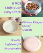 6-Pack Cat Food Bowls – BPA-Free Non-Slip Plastic Cat Dishes, 5.5″ Wide Shallow Whisker Fatigue Relief Cats Bowls Set for Multi-Cats Homes, Dishwasher Safe