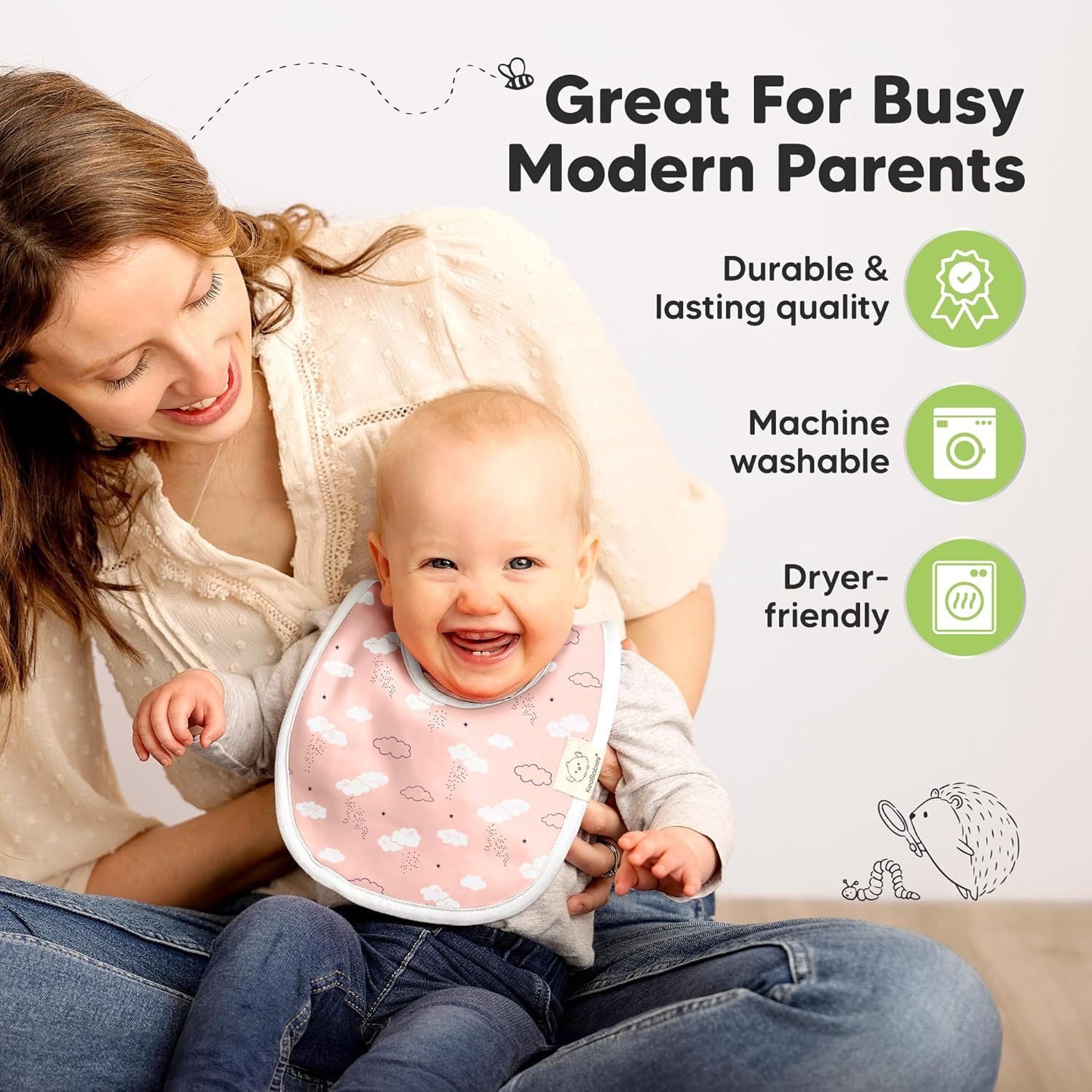 Super Absorbent – Our organic baby boy and girl bibs are made with 100% organic cotton (GOTS-certified) and backed with water resistant fleece for added absorption. This dual layer design helps to keep your baby clean and fresh all day long. Suitable for newborns, infants, toddlers, heavy droolers and teething babies.