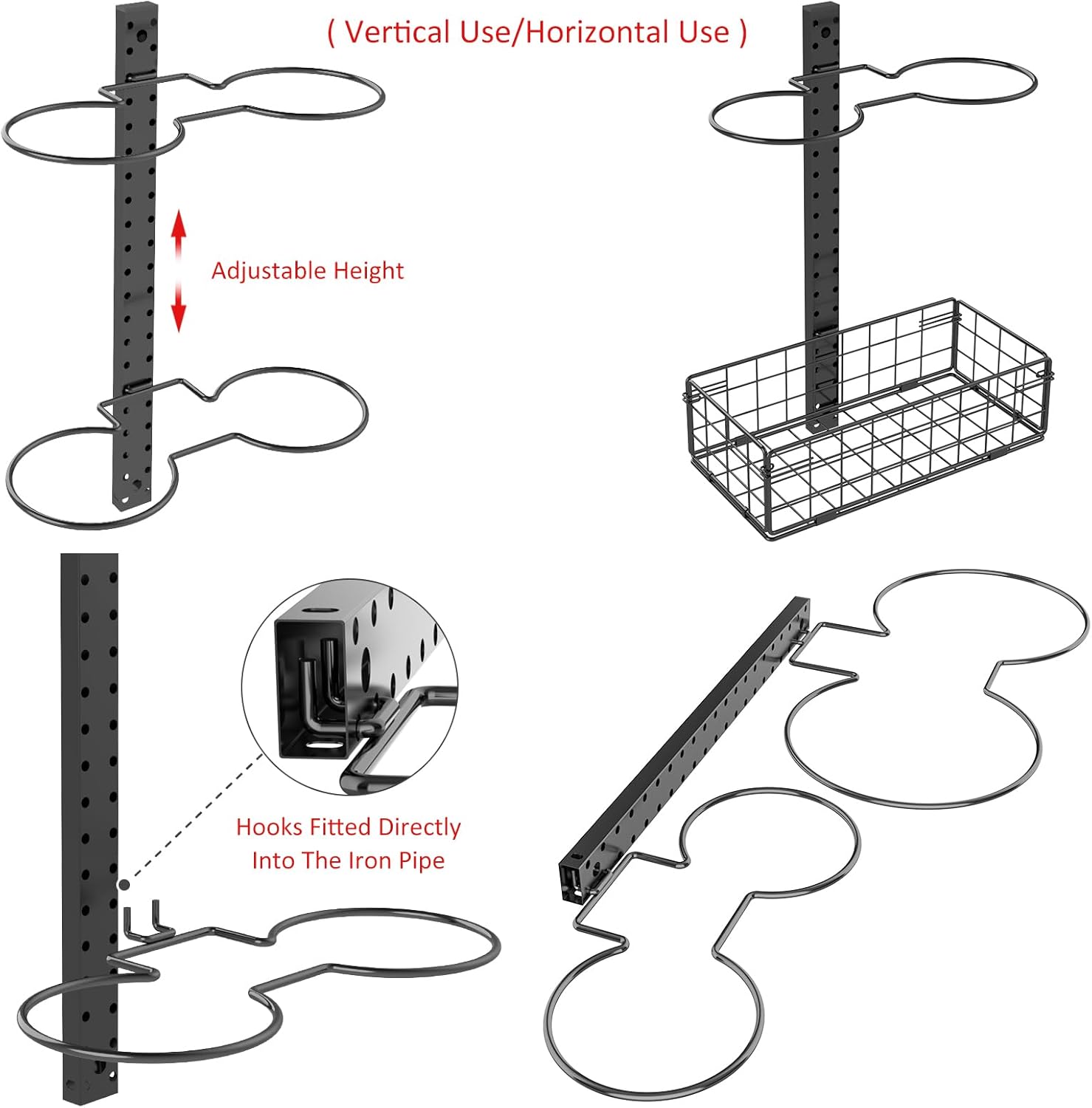 HEIGHT ADJUSTABLE】:The pole of the basketball hoop is designed with holes of different heights, you can adjust the height of the hooks freely. The hooks do not need to be installed with screws, just align the holes on the pole, very convenient.
